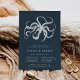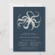 Les invitations à nos dîners de répétition chic côtiers présentent une illustration de pieuvre de style gravé vintage en blanc crémeux sur un arrière - plan bleu marine. Personnalisez avec vos détails de la cérémonie de mariage et de la célébration du dîner.