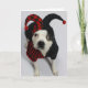Carte de remerciements comportant un chien dans un costume de farceur.