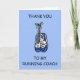 Une paire de chaussures d'entraînement caricaturale contre un arrière - plan bleu ciel. Les mots "Merci à mon entraîneur" accompagnent l'image.