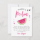 Carte de remerciement moderne et amusante pour l'anniversaire d'une fille, avec une illustration aquarelle d'une pastèque, fruit tropical rose. Le texte dit "merci a melon".