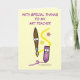 Un pinceau de dessin animé et un crayon décorent cette carte de remerciements à votre professeur d'art spécial. Pour les articles correspondants, tapez "pinceau pingouin-coin" dans la barre de recherche Zazzle.