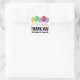 autocollant Merci avec ballons colorés, serpentins et étoiles. Texte "Merci d'être venu à ma fête". Peut être utilisé comme scellés d'enveloppe sur les cartes de remerciement ou comme autocollants décoratifs sur les faveurs de fête. Design lumineux, ludique et coloré.