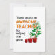 Carte ENSEIGNANT FUN, MERCI élégant et fantastique. Le design moderne montre une typographie orange audacieuse, avec trois plantes de différentes tailles entrelacés dans la lettrage. Le texte dit "Merci à un professeur de plante génial pour m'aider à grandir". Ce Carte de remerciements d'enseignant élégant et génial serait d'envoyer à vos enseignants préférés pour leur montrer votre appréciation. Ce Carte de remerciements d'Enseignant pour Enseignants Awesome serait également formidable pour la fin de la session, l'appréciation de l'Enseignant, les anniversaires, Noël, etc. Des cadeaux correspondants sont disponibles, vous pouvez donc créer des ensembles de cadeaux géniaux pour le meilleur enseignant jamais.