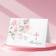 Elégant bouquet floral peint à la main dans des couleurs pastel pâle et poussiéreuses, rose vif, rose, verdure, branches. Croix rose avec faux diamant. Facile do-it-yourself éditable modèle première communion sainte, confirmation, baptême, baptême, baptême MERCI cartes; cartes de qualité mais peu coûteuses. Espace pour ajouter un message personnel.
