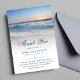 Nature sympathie paradisiaque merci carte funéraire avec couverture blanche et un paysage de mer de plage, scène d'eau.