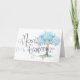 Merci Beaucoup (Französisch) Englisch Übersetzung: Vielen Dank. Botschaft in elegantem, handgeschriebenem, Wirblen Skript. Schöner Aquarellbaum mit blauen Blätter und Blume im Hintergrund.