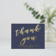 NouvelleAlléeParc - Carte postale élégante, avec 'Merci' dans une typographie élégante en faux or à feuilles, sur un fond bleu marine. Facile à personnaliser dans Zazzle avec vos propres noms, date ou autre texte pour une conception personnalisée. Tous les styles de texte, couleurs et tailles peuvent être modifiés pour répondre à vos besoins. Vous pouvez également changer la couleur de fond en n'importe quelle couleur que vous préférez.