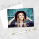 Moderne et girly personnalisé graduation à plat merci cartes de notes caractéristiques une photo avec blanc (peut être modifié) Merci texte script avec un accent de coeur mignon. Personnalisez avec une photo de la diplômée, son nom, et l'année de classe. Inclut l'espace au dos de la carte pour une note manuscrite.
