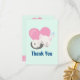 Carte de remerciements plat avec une adorable illustration graphique. Un chaton blanc avec une jolie image empreinte de patte sur sa fourrure. Dormir tranquillement. Un grand coeur rose derrière elle et quelques petites étoiles aussi. Arrière - plan vert menthe.