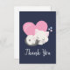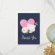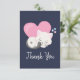 Carte de remerciements plat avec une adorable illustration graphique. Un chaton blanc avec une jolie image empreinte de patte sur sa fourrure. Dormir tranquillement. Un grand coeur rose derrière elle et quelques petites étoiles aussi. Arrière - plan bleu foncé.