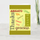 Ce design de texte typographique cool comprend les mots Merci en anglais, argot britannique, argot américain, français, japonais, allemand, espagnol, italien et russe... chacun dans sa propre police spéciale et couleur sur un arrière - plan jaune et vert olive. Une façon cool de dire merci ! Cette carte de note est vide à l'intérieur pour que vous puissiez ajouter votre propre message.