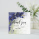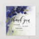 Design élégant et artistique de calligraphie de Merci avec une étonnante aquarelle fleur d'orchidée bleu foncé et aquarelle vert et bleu foncé éclaboussant dans l'arrière - plan. Personnalisez en modifiant les détails du texte.