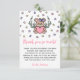Bébée fille porte un carte de remerciements de baby shower thématique avec une illustration dessinée à la main d'un ours en peluche et de la verdure entourée de petites étoiles. Baby shower bébé violet et rose merci carte à plat avec un thème d'ours en peluche. L'ours en peluche prend une douche pour bébé dans des étoiles roses et un ours portant un arc violet. Pink nous pouvons attendre longtemps carte de remerciements de baby shower thématique avec une note de remerciement imprimée.