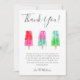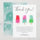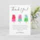 Carte de remerciements à thème popsicle mignon avec aquarelle illustrant des pops de glace colorés. Le message remercie les invités d'être venus à la douche et de leurs cadeaux. Idéal pour une douche neutre pour les hommes et les femmes en été.