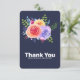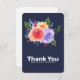 Un carte de remerciements de fête (ou autre occasion) avec un joli bouquet de roses aquarellés avec des sprigs, des feuilles et des branches, le tout dans un arrangement floral coloré. Arrière - plan bleu marine.