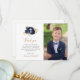 Cette élégante carte de remerciements moderne de première communion comporte une petite croix blanche sur un bouquet de fleurs bleu marine et de feuillage doré, au-dessus des mots "Merci" en écriture manuscrite couleur or sur un arrière - plan blanc. Gardez le texte personnalisable ou remplacez-le par votre propre message, ajoutez le nom de votre enfant dans un script d'écriture manuscrite en or et remplacez facilement l'exemple d'image par une photo de votre propre enfant.