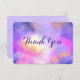 Une carte de remerciements élégante avec un joli mélange de pastels et de couleurs vives. Illustration abstraite colorée avec une image cosmique de l'espace dans les aquarelles rose, violet et jaune. Les couleurs se mélangent et se mélangent pour créer des formes éthérées lumineuses avec de petites étoiles scintillantes partout. Le dos a un message de remerciement que vous pouvez customiser pour convenir à votre occasion ou partir tel quel.