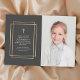 Ajoutez des photos et votre message de remerciement personnalisé. Ce design est composé d'un cadre géométrique doré et d'une croix d'or imitation.
