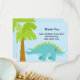 Finissez votre partie outre de la droite avec cet adorable, garçon d'anniversaire vous remercient. Il est placé sur un arrière - plan bleu-clair fait avec un palmier vers la droite. Il y a un dinosaure vert bleu devant l'arbre. Vérifiez nos beaucoup d'autres produits dans cette ligne : invitations, affranchissement, autocollants, et beaucoup plus. Illustrations de Jessica Weible de ©