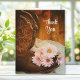 Écrivez votre propre message d'appréciation réfléchi à l'intérieur de la rustique chic Pink Daisies et Cowboy Boots Western Thank You Note Card. Convient pour les cadeaux reçus après une ferme rurale décontractée mais classe, une fête de grange ou une douche nuptiale de style ranch, une fête de fiançailles ou le thème du mariage. Cette charmante note de remerciement personnalisée présente une photo florale de bottes de cowboy brun, de fleurs de fleur marron foncé et de bois patiné brun.