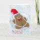 Un homme en pain d'épices avec chapeau de Père Noël faisant un ange dans la neige pour vous remercier à la clientèle.