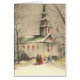 Illustration vintage image de Noël représentant une église en hiver avec neige.