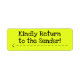 Cette conception étiquette de base comporte le message "Kindly Return to the Sender!", ainsi qu'une forme de flèche décorative. Il pourrait être utilisé pour indiquer que le courrier reçu peut avoir été mal adressé et devrait être retourné à l'expéditeur. [~Z0000168]