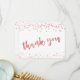 Ajoutez un peu d'éclat à vos notes d'appréciation avec ce script de brosse en or rose Merci cartes avec une bordure en confetti rose en or brillant. Le verso peut être préimprimé avec un message de remerciement ou l'exemple de texte peut être supprimé pour laisser la zone vide pour l'écriture manuscrite.