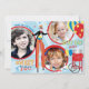 Carte de remerciements de thème de carnaval de bonbon et d'amusement avec 3 insertions de photo. En l'aqua, le bleu, le rouge, et le jaune.
