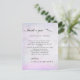 Couleurs d'un matin de printemps en l'arrière - plan de ce carte de remerciements élégamment simple. Calligraphy souligne l'accueil du couple. Le script est associé à une police serif d'art. Joli ajout à la suite Lavender Grey (https://www.zazzle.com/lavender_gray_wedding_invitation-256184733301046449?view=113469114630142774) pour un mariage Lilac ou Lavender Vintage ou fleuri.
