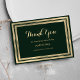 Elégante invitation au Merci de mariage géométrique et moderne forêt vert et or élégant. Cette simple invitation au vert foncé et à l'or est parfaite pour tout événement ou occasion élégant et sophistiqué. Ce design exquis et éblouissant est parfait pour un couple ou un individu branché et élégant. Customisez ce design avec votre propre message et des informations personnalisées. Tous les dessins sont imprimés.