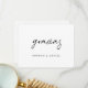 Cette carte de remerciement simplement élégante comporte 'gracias' dans un script moderne, détendu et chaleureux en noir et convient parfaitement à diverses occasions ! Cet élément du design ne peut pas être modifié. Vous pouvez changer la couleur, la police ou la taille de tout autre texte. Nous avons choisi le noir comme paramètre par défaut pour les autres textes au recto et au verso. Nous avons mis du texte de remplacement au verso pour que vous puissiez le remplacer par votre message. Mais n'ayez pas l'impression d'être limité par cela. Si vous préférez laisser le verso vierge pour pouvoir écrire un mot manuscrit sur chaque carte, vous pouvez le faire. Mais assurez-vous dans tous les cas de supprimer notre exemple de texte ! Nous n'avons pas choisi de couleur par défaut pour le fond des deux côtés. Au lieu de cela, la valeur par défaut est simplement le papier lui-même comme couleur de base. Vous pouvez changer cela en sélectionnant une couleur dans les outils d'édition si vous le souhaitez. Un design minimaliste comme celui-ci met le papier en valeur et vous invite à ajouter vos propres mots manuscrits au verso, qu'il s'agisse de vos signatures ou d'un message. Nous avons choisi un papier mat plutôt que semi-brillant comme choix de papier par défaut, car il convient parfaitement pour écrire votre propre message et ne bavera pas. Vous pourriez également envisager de passer à quelque chose avec une