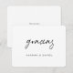 Cette carte de remerciement simplement élégante comporte 'gracias' dans un script moderne, détendu et chaleureux en noir et convient parfaitement à diverses occasions ! Cet élément du design ne peut pas être modifié. Vous pouvez changer la couleur, la police ou la taille de tout autre texte. Nous avons choisi le noir comme paramètre par défaut pour les autres textes au recto et au verso. Nous avons mis du texte fictif au verso pour que vous puissiez le remplacer par votre message. Mais n'ayez pas l'impression d'être limité par cela. Si vous préférez laisser le verso vierge pour pouvoir écrire un mot manuscrit sur chaque carte, vous pouvez le faire. Mais assurez-vous dans tous les cas de supprimer notre exemple de texte ! Nous n'avons pas choisi de couleur par défaut pour le fond de chaque côté. Au lieu de cela, le paramètre par défaut est simplement le papier lui-même comme couleur de base. Vous pouvez changer cela en sélectionnant une couleur dans les outils d'édition si vous le souhaitez. Un design minimaliste comme celui-ci met le papier en valeur et vous invite à ajouter vos propres mots manuscrits au verso, qu'il s'agisse de vos signatures ou d'un message. Nous avons choisi un papier mat plutôt que semi-brillant comme choix de papier par défaut, car il convient parfaitement pour écrire votre propre message et ne bavera pas. Vous pourriez également envisager de passer à quelque chose avec une