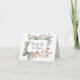 Ce carte de remerciements entouré d'une couronne de fleurs sauvages. Les couleurs comprennent le rouge rose, le vert sauge, le bleu pâle, l'orange, le rose et le blanc.