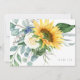 Funérailles, deuil carte de remerciements. Nom de famille et merci sur le dos. Typographie. Ravi. Tournesol et Eucalyptus.