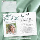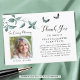 Merci funéraire Papillon Botanique Vert Photo Merci Cartes. Envoyez des remerciements sincères pour la gentillesse et la compassion dont vous avez fait preuve pendant votre période difficile de perte. Le design comprend des éléments botaniques et des papillons d'aquarelle vert sauge doux et muet, une photo et une zone de message modifiable pour votre texte personnalisé. ASSISTANCE : Pour obtenir de l'aide sur la modification de la conception, le transfert de la conception à un autre produit ou si vous souhaitez coordonner des éléments, contactez le concepteur AVANT DE COMMANDER via l'onglet MESSAGE Conversation Zazzle ou envoyez un courriel à makeitaboutyoustore@gmail.com.