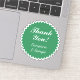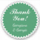 Ce modèle d'autocollant de style phoque reconnaissable comporte le message d'appréciation "Merci!", et un nom personnalisé. La forme du phoque est couleur vert de mer. Un autocollant comme celui-ci pourrait être utilisé pour aider à montrer l'appréciation pour quelque chose de spécial que quelqu'un d'autre a fait, comme assister à un mariage ou donner un cadeau de fête de remise de diplômes.