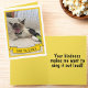 Envoyez un salut adorable et humoristique à quiconque possède cette carte. Il est muni d'un chaton siamois ouvert en bouche portant un collier de camouflage sur le capot de la carte. La bannière jaune a le texte modèle "MERCI TELLEMENT ?". L'intérieur contient des informations supplémentaires sur les salutations des modèles. Vous pouvez même remplacer votre photo préférée au format vertical par cette photo de chaton. Remplissez les champs du modèle pour modifier le capot et le message intérieur, retirez le texte intérieur de l'espace pour une note manuscrite plus tard ou cliquez sur personnaliser pour sélectionner le style, la taille et la couleur de la police que vous préférez.