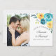 Turquoise et jaune - turquoise et citron à fleurs mariage merci cartes photos avec des accents de corail avec des fleurs d'aquarelle et feuillage.
