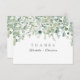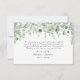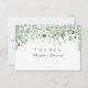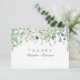 Ce Carte de remerciements Botanique Eucaliptus Greenery - présente une cascade verdoyante de rameaux d'eucaliptus, des feuilles sur l'arrière - plan blanc pâle avec texte de script moderne. Le revers de la carte est également blanc avec des feuilles eucaliptus et message de remerciement.