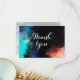 Une carte de remerciements au design abstrait moderne. Peindre des taches et des couleurs tourbillonnantes en turquoise, blanc, orange et noir avec des touches de bleu. Le dos de la carte contient un message qui peut être customisé, supprimé ou laissé tel quel.