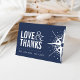 Conçues pour coordonner avec notre suite de faire-part de mariage Nautiques Modernes, ces cartes de remerciement bleu marine et blanc estivale sont dotées de lettres blanches en gras avec votre nom ou votre choix de personnalisation, et d'une illustration de boussole blanche. Ajoutez un message intérieur optionnel pour faire de votre remerciement une brise.