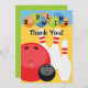 Ce carte de remerciements personnalisable d'anniversaire de bowling comporte plusieurs boules de bowling dans des couleurs lumineuses et des goupilles de bowling. Peut être customisé comme invitation de partie de bowling, un carte de remerciements de partie de bowling et plus.