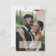 Elégante carte de remerciements moderne de mariage photo avec une élégante façade moderne. Une photo, avec un message sincère et une photo sur le dos. La police de caractères avec les noms et la date est une police serif classique et élégante. Remplacez l'échantillon de photos par vos propres photos mariages préférées.