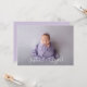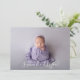 Les annonces de naissance élégamment sucrées comprennent votre photo préférée de nouveau-né en plein saignement et votre message en belle écriture blanche sur le devant, votre message de remerciement, le nom du bébé, les statistiques de naissance et vos noms en lettres blanches chic sur le dos. Changez la couleur au dos de n'importe quelle couleur qui convient à votre photo à l'aide de notre outil de sélection de couleurs en cliquant sur le lien Personnaliser plus loin. Vous pouvez ajouter d'autres photos sur le dos, aussi!