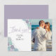 PHOTO MERCI | Ajouter Votre photo - Coquillages décontractés modernes en lilas de prune et bleu poussiéreux décorent les coins, Merci écrit dans une calligraphie manuscrite en détresse qui donne l'impression d'être écrit dans le sable humide, cette combinaison de calligraphie combinée à une disposition de texte minimaliste de style contemporain en fait une suite de mariage de plage de style tendance. Conception créée pour TheBarefootBride™ par © WhimsicalArtwork™. Il fait partie d'une collection de papeterie mariage avec accessoires mariages assortis également baby shower et autres articles de papeterie occasion. N'hésitez pas à nous contacter si vous avez besoin d'aide.