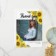 Faire-part photo de graduation de tournesol avec lettrage à main et style calligraphie affichage texte