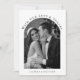 Voici notre Carte de remerciements élégant Mariage photo noir et blanc. Ce design sophistiqué et intemporel saisit parfaitement l'essence de votre journée spéciale tout en exprimant votre gratitude à vos amis et à vos proches. Réalisée avec soin dans le détail à l'aide d'un exemple de photo d'espace réservé en noir et blanc sophistiqué, vos cartes de remerciement feront certainement une impression durable. Au premier plan de ce design se trouve une palette de couleurs noir et blanc classique, créant un contraste saisissant qui respire l'élégance. La combinaison de ces tons intemporels apporte une touche de sophistication à chaque aspect de la carte. Utilisez une photo préférée en noir et blanc de votre jour de mariage pour obtenir ce look intemporel. En complément de la photo, la carte est dotée d'une typographie élégante qui exprime votre appréciation sincère. Les polices soigneusement choisies apportent un sens de raffinement, tandis que le placement réfléchi du texte assure clarté et lisibilité. Les mots "Merci" sont exposés avec élégance, servant d'expression gracieuse de gratitude. Que vous exprimiez grâce à votre famille, vos amis ou des vendeurs qui ont rendu votre journée spéciale, notre Elegant Black and White Photo Mariage Carte de remerciements est le choix parfait. Il transmet non seulement votre appréciation sincère, mais sert aussi de beau souvenir de votre jour de mariage.