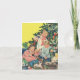 Illustration de Noël vintage représentant des enfants ouvrant des cadeaux près du sapin de Noël le matin de Noël.
