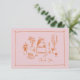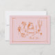 Cette carte de remerciements nuptiale rose pâle/pêche est basée sur la tendance populaire dessinée à la main qui propose des plats et des boissons de style français ou italien dans un style fantaisiste, gribouillant, doodle. Ce design est idéal pour un brunch nuptial. Il présente des illustrations dessinées à la main d'un vase de fleurs, de champagne, de tasses et de soucoupes, de crêpes et de cupcakes.